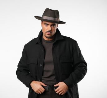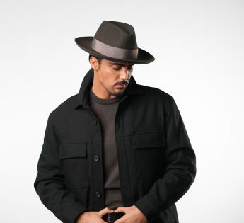 유명한 명품 브랜드는 이 작품을 위해 고급 펠트로 만든 페도라를 선택했습니다. 이 모델은 고품질 디자인 덕분에 편안하고 우아하며 세련됩니다. 상징적인 모자는 여기에서 디자이너의 이름이 금색 글씨로 적힌 간단한 그로스 그레인 새틴으로 장식되어 있습니다. 이 모자 하나만으로도 우리의 룩을 한층 돋보이게 할 수 있습니다.