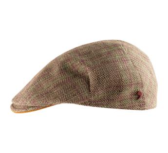 모자는 슬림한 핏으로 디자인되었습니다. 체브론 패턴의 원단을 통해 보라색과 녹색의 섬세한 체크무늬가 비칩니다.
