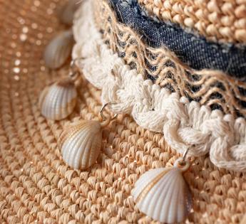 조개껍데기 또는 진주 장식으로 두 가지 여름의 바람을 담아냈습니다. 더 브림이 강조된 해변 스타일, 혹은 섬세하고 고급스러운 무드.