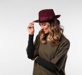 이탈리아에서 수작업으로 제작된 이 펠트 모자는 세련된 우아함의 정점을 구현합니다. 스웨이드 마감은 빛을 잡아주며 섬세한 특징을 강조하는 벨벳 같은 마감을 드러냅니다. 클래식한 매듭으로 묶인 넓은 그로그랭 리본으로 장식된 이 모자는 뛰어난 장인 정신을 증명하는 Guerra 1855 시그니처 플라크로 강조됩니다.