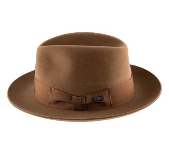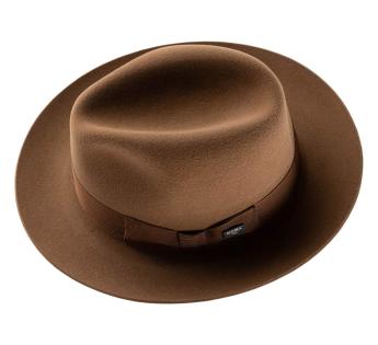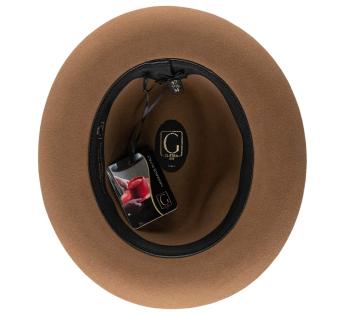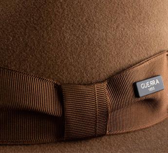 이탈리아에서 수작업으로 제작된 이 펠트 모자는 세련된 우아함의 정점을 구현합니다. 스웨이드 마감은 빛을 잡아주며 섬세한 특징을 강조하는 벨벳 같은 마감을 드러냅니다. 클래식한 매듭으로 묶인 넓은 그로그랭 리본으로 장식된 이 모자는 뛰어난 장인 정신을 증명하는 Guerra 1855 시그니처 플라크로 강조됩니다.