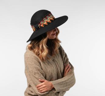 이탈리아에서 제작된 펠트 울로 만든 캐플린, 신축성 좋은 우아한 실루엣을 자랑합니다. 다채로운 지그재그 패턴의 장식이 보헤미안하고 밝은 느낌을 더해줍니다. 개성 넘치는 모자를 위한 눈에 띄는 질감의 조화입니다.