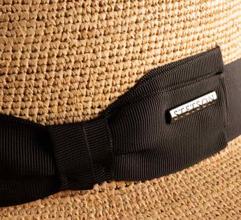여름 모자는 공기가 잘 통하도록 섬세하게 뜨개질된 짚으로 만들어졌습니다. 가장자리는 조절 가능하여 사용 중 실용성을 높입니다. 캐주얼한 룩은 블랙 그로스그레인 새틴으로 장식되어 있습니다.