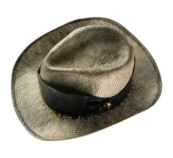 카우보이를 재해석한 이 모자는 마모 효과를 위해 검은색으로 그을린 밀짚으로 만들어졌으며, 겉보기에는 무심한 느낌을 줍니다. 진짜 악어 가죽으로 만든 브레이드가 그 진정한 매력을 더하고, 빈티지한 느낌의 장식 체인으로 장식되어 있습니다. 정성스럽게 수공예로 제작되었으며, 태양과 열로부터 적절한 보호를 제공합니다.