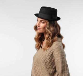 재즈 스타일과 우아함을 동시에 갖춘 이 매우 세련된 포크파이 모자를 선택하세요. 장식 밴드, 올라간 가장자리, 그리고 다소 낮은 크라운이 이 스타 모자의 전설적인 모든 특징을 부여합니다. 모든 색상으로 제공되는 매우 세련된 모델입니다.