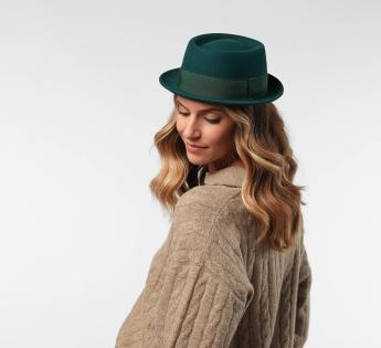 재즈 스타일과 우아함을 동시에 갖춘 이 매우 세련된 포크파이 모자를 선택하세요. 장식 밴드, 올라간 가장자리, 그리고 다소 낮은 크라운이 이 스타 모자의 전설적인 모든 특징을 부여합니다. 모든 색상으로 제공되는 매우 세련된 모델입니다.
