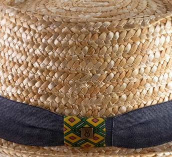 어린이를 위한 포크파이 모자는 바느질된 짚으로 만들어졌습니다. 브레이드는 매력적인 청바지 효과를 위해 데님으로 되어 있습니다. 기하학적 패턴의 링은 우리 브랜드 BCBG Couture의 핀으로 완성됩니다. 이 디테일은 마땅한 우아함을 더합니다.