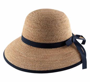 신축성 좋은 실루엣, 넉넉한 브림, 그리고 리본 매듭이 섬세하고 빛나는, 깊이 있는 여성미를 그려냅니다. 얼굴을 부드럽게 감싸주며, 은은하게 드러난 뒷부분이 자연스럽게 목선과 머릿결을 돋보이게 합니다.