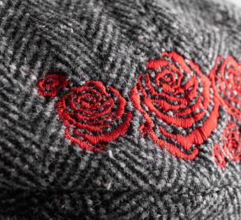 울 트위드로 제작된 이 작품은 시대를 초월한 헤링본 패턴을 특징으로 하며, 스타일화된 꽃 자수가 돋보입니다. 전통적인 버튼을 대신하는 카빌루는 프로필에 특별한 터치를 더합니다.