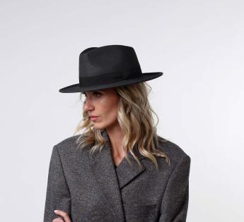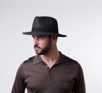 신축성 좋은 펠트로 제작된 남성 여행자용 모자, 부드럽고 편안하여 겨울철에 완벽하게 따뜻한 액세서리가 됩니다. 새틴 장식 밴드로 소박하게 장식되어 있습니다.