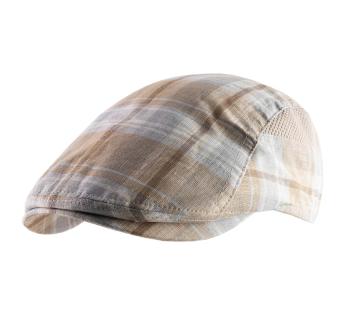 전통적이면서도 현대적인 스타일의 모자입니다. 체크 무늬로 세련미를 더합니다.