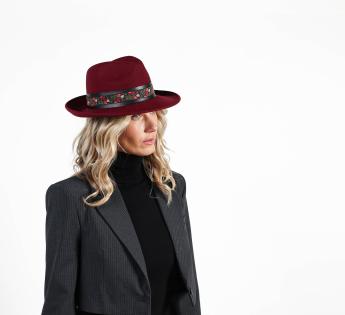 페도라 모자에 인조 가죽으로 수놓은 꽃 장식이 있는 브레이드가 있습니다. 꽃은 이탈리아식 펠트 배경에 색상을 더합니다. 전체적으로 거친 가죽의 모습과 꽃의 섬세함을 결합한 독창적인 조화를 제공합니다. 이 모자는 방수(워터 프루프)이며 접을 수 있는 겨울 모델입니다. 펠트는 따뜻하고 내구성이 뛰어난 소재로 가을/겨울에 적합합니다. 효과적으로 보호합니다.