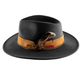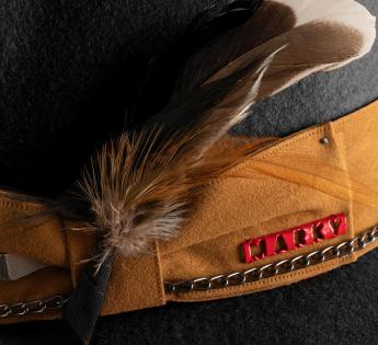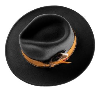 다양한 소재와 질감을 조합하는 것은 이번 시즌의 유행 중 하나입니다. 이 잘 생각된 펠트-스웨이드 조합을 직접 확인해 보세요. 결과는 자연스러운 밝은 색상의 브레이드로 장식된 클래식한 모자이며, 성공적으로 스티치, 장식 및 깃털이 더해져 있습니다. 이렇게 우리는 아름다운 광택이 더해진 창작물을 즐길 수 있습니다.