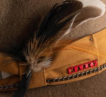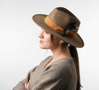다양한 소재와 질감을 조합하는 것은 이번 시즌의 유행 중 하나입니다. 이 잘 생각된 펠트-스웨이드 조합을 직접 확인해 보세요. 결과는 자연스러운 밝은 색상의 브레이드로 장식된 클래식한 모자이며, 성공적으로 스티치, 장식 및 깃털이 더해져 있습니다. 이렇게 우리는 아름다운 광택이 더해진 창작물을 즐길 수 있습니다.