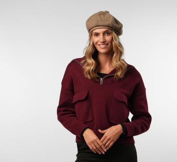 이 베레는 프랑스 패션의 진정성을 기념하며 모델의 시대를 초월한 우아함을 이어갑니다. 뒤쪽, 옆쪽 또는 캡처럼 착용할 수 있으며, 앞쪽의 브림을 눌러서 바이저처럼 착용할 수 있습니다.