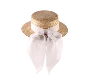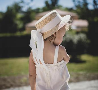 카노티에, 이탈리아에서 정교하게 꿰메진 짚으로 제작되었습니다. 프랑스의 우리 작업실에서 수작업으로 만든 모슬린 리본으로 장식되어 있습니다. 이는 작은 소녀를 위한 모델로, 우아함이 가득합니다.