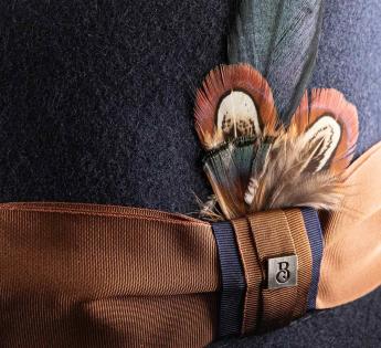 그의 컴팩트하고 세련된 형태는 은은한 깃털로 강조된 새틴 리본으로 더욱 돋보이며, 절제된 세련미를 자아냅니다. 펠트의 가벼움은 비할 데 없는 편안함을 제공하며, 정교하게 제작된 밴드는 전통과 혁신을 결합하여 완벽한 착용감을 보장합니다.