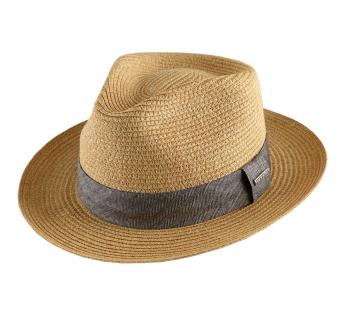 크라운의 상대적으로 각진 디자인이 위로 올라가는 짧은 브림에 의해 강조된 페도라. 비스코스로 제작된 토요 짚은 여러 가지 장점을 가지고 있으며, 큰 유연성, 방수성 및 내구성과 같은 자연 재료의 여러 특성을 결합합니다.