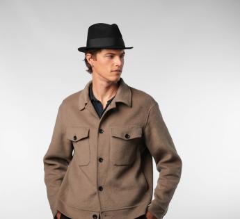짧은 브림과 약간 높아진 크라운을 가진 이 트릴비는 측면으로 기울이거나 뒤로 기울여 착용하여 라인을 깨뜨리는 것을 즐깁니다. 평평한 매듭으로 마무리된 그로스그레인 브레이드는 모델의 격식 있는 정신을 강조합니다.