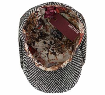 아이리쉬 캡은 여유 있는 볼륨으로 옆면이 넓은 스타일입니다. 볼륨은 비즈의 버튼을 분리하여 강조할 수 있습니다. 큰 지그재그 패턴이 원단을 장식합니다.