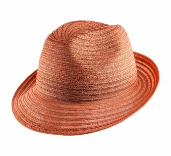 모자는 꿰메진 짚 기법을 사용하여 제작되며, 땋기 꿰메진 짚을 회전식으로 가장자리에 맞춰 사용합니다.