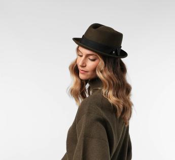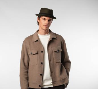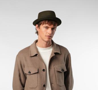 양모 펠트로 제작되어 구조감, 편안함, 완벽한 착용감을 제공합니다. 전형적인 평평한 크라운과 브림 올라가는 형태는 현대적인 룩을 강조하면서도 접근성이 좋고 착용하기 쉽습니다. 과하지 않게 스타일을 강조하고 싶은 사람들을 위해 디자인된 강한 개성을 가진 모자입니다.