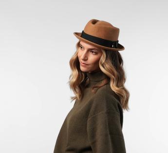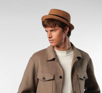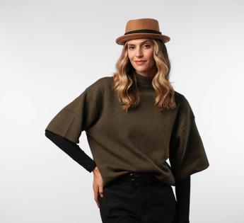 양모 펠트로 제작되어 구조감, 편안함, 완벽한 착용감을 제공합니다. 전형적인 평평한 크라운과 브림 올라가는 형태는 현대적인 룩을 강조하면서도 접근성이 좋고 착용하기 쉽습니다. 과하지 않게 스타일을 강조하고 싶은 사람들을 위해 디자인된 강한 개성을 가진 모자입니다.