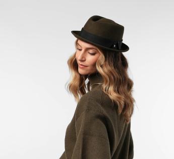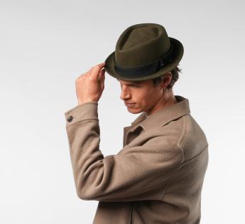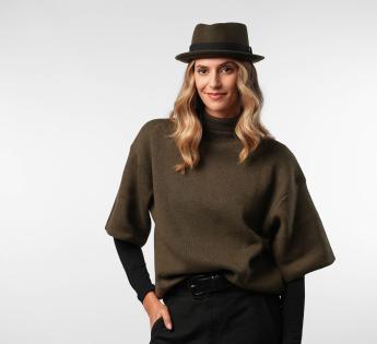 양모 펠트로 제작되어 구조감, 편안함, 완벽한 착용감을 제공합니다. 전형적인 평평한 크라운과 브림 올라가는 형태는 현대적인 룩을 강조하면서도 접근성이 좋고 착용하기 쉽습니다. 과하지 않게 스타일을 강조하고 싶은 사람들을 위해 디자인된 강한 개성을 가진 모자입니다.