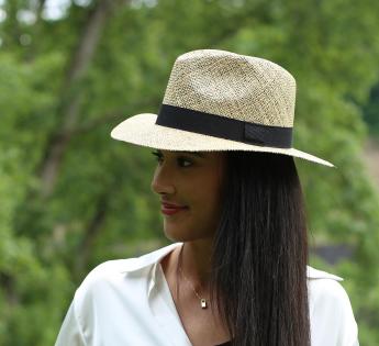 조금 통기성이 있는 직조로 제작된 가벼운 밀짚 모자. 뒤와 앞쪽의 아래로 내려간 가장자리는 모험적인 느낌을 강조하며 이마와 목을 태양으로부터 더욱 보호합니다. 디자인은 클래식한 평평한 리본으로 된 검은색 브레이드 장식으로 마무리됩니다.