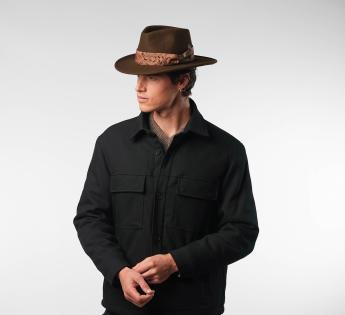우아함과 개성을 완벽하게 결합한 이 트래블러는 리옹의 공방에서 세심한 장인 정신으로 제작되었습니다. 펠트의 색조와 어울리는 브레이드로 장식되어 있으며, 섬세한 아라베스크 패턴으로 돋보입니다. 일부는 약간의 광택이 있으며, 벨벳 효과가 미묘하게 나타나 빛을 포착하고 모자의 실루엣을 풍부하게 합니다.