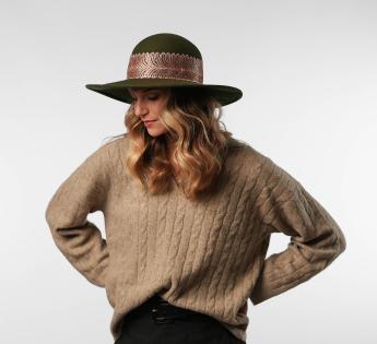 자연 방수(워터 프루프) 펠트 울로 만들어져 편안함, 보호 및 지지를 제공합니다. 넓은 가장자리를 가진 신축성 좋은 형태가 얼굴을 우아하고 여성스럽게 감싸줍니다. 장인 정신에서 태어난 특별한 작품으로, 개성 있는 스타일을 확고히 합니다.
